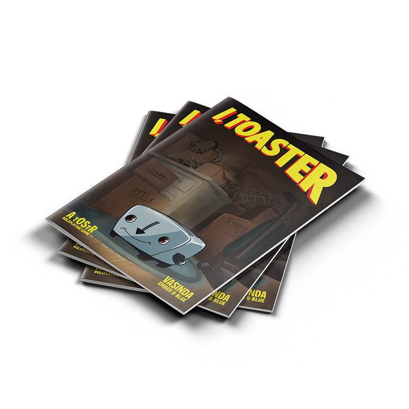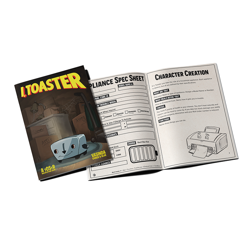 Layout and design for I, Toaster, an old school inspired RPG where you take on the role of small appliances in a big world.
